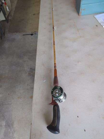 DescriptionShakespeare Marhoff 1964 Model GE fishing rod. It has a 5 1/2 Medium Heavy Action with 3/8 to 1oz. lure and 8# to 20# line.