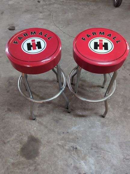 DescriptionTwo bar stools with red Farmall logo seats and chrome frames. Seats are made of 100% polyurethane foam. Made in China for CNH America LLC.