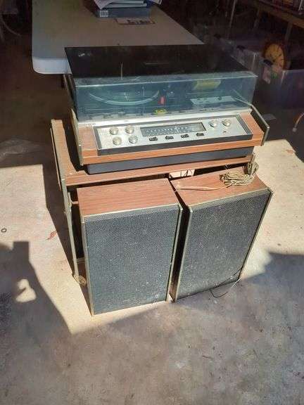 DescriptionMorse stereo system including turntable, radio, 8-track player and speakers. Features include a genuine diamond LP needle and an air suspension stereo system. Also included is one 8-track cartridge labeled 'Bill Monroe A VOICE FROM ON HIGH'.