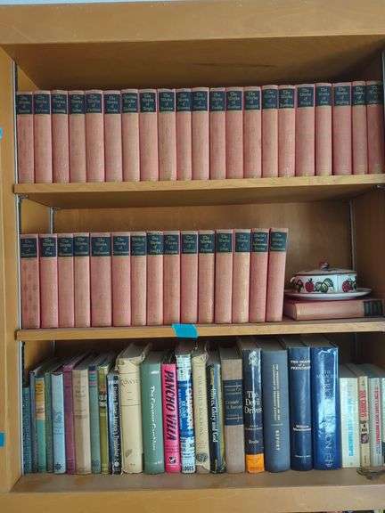 Collection of various books. Included are multiple volumes from a series entitled "The Works of", with various authors. Other titles include books about presidents, poetry, and world events.